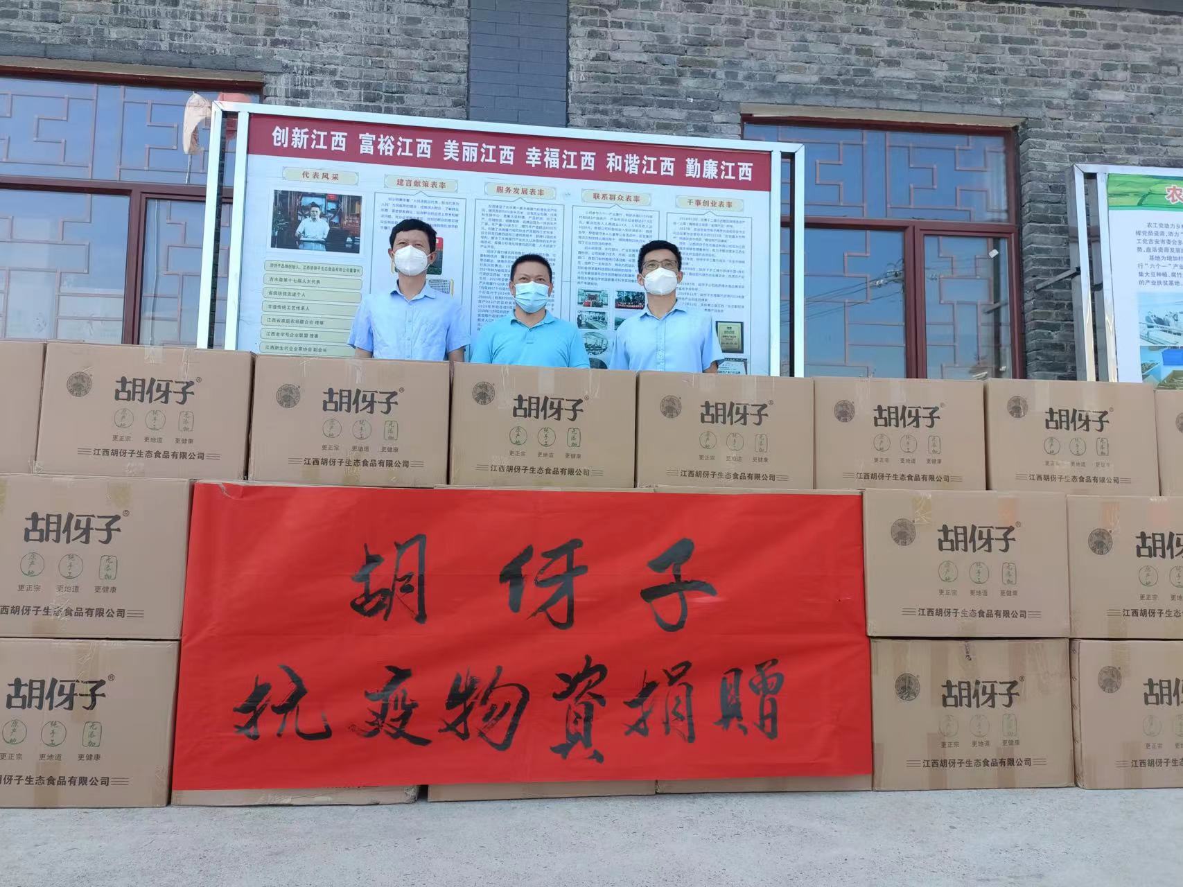 9月9日下午,江西胡伢子生态食品有限公司向吉水县红十字会捐赠“胡伢子”腐竹1000份,价值20000元,支援抗疫,用于封控区居民生活物质补充,助力打赢疫情防控阻击战、歼灭战。
