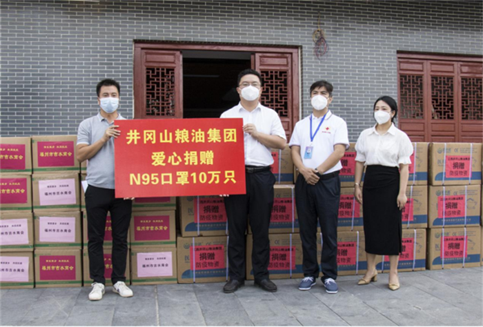 9月10日,江西井冈山粮油集团有限公司在黄小来董事长的统筹安排下,分别向吉水县红十字会、永丰县红十字会捐赠了医用防护N95口罩各10万只,合计20万只。吉水县委常委、常务副县长唐小超出席捐赠仪式,并感谢企业的爱心担当之举。另外,9月10日江西井冈山粮油集团有限公司抗疫捐款2万元。
