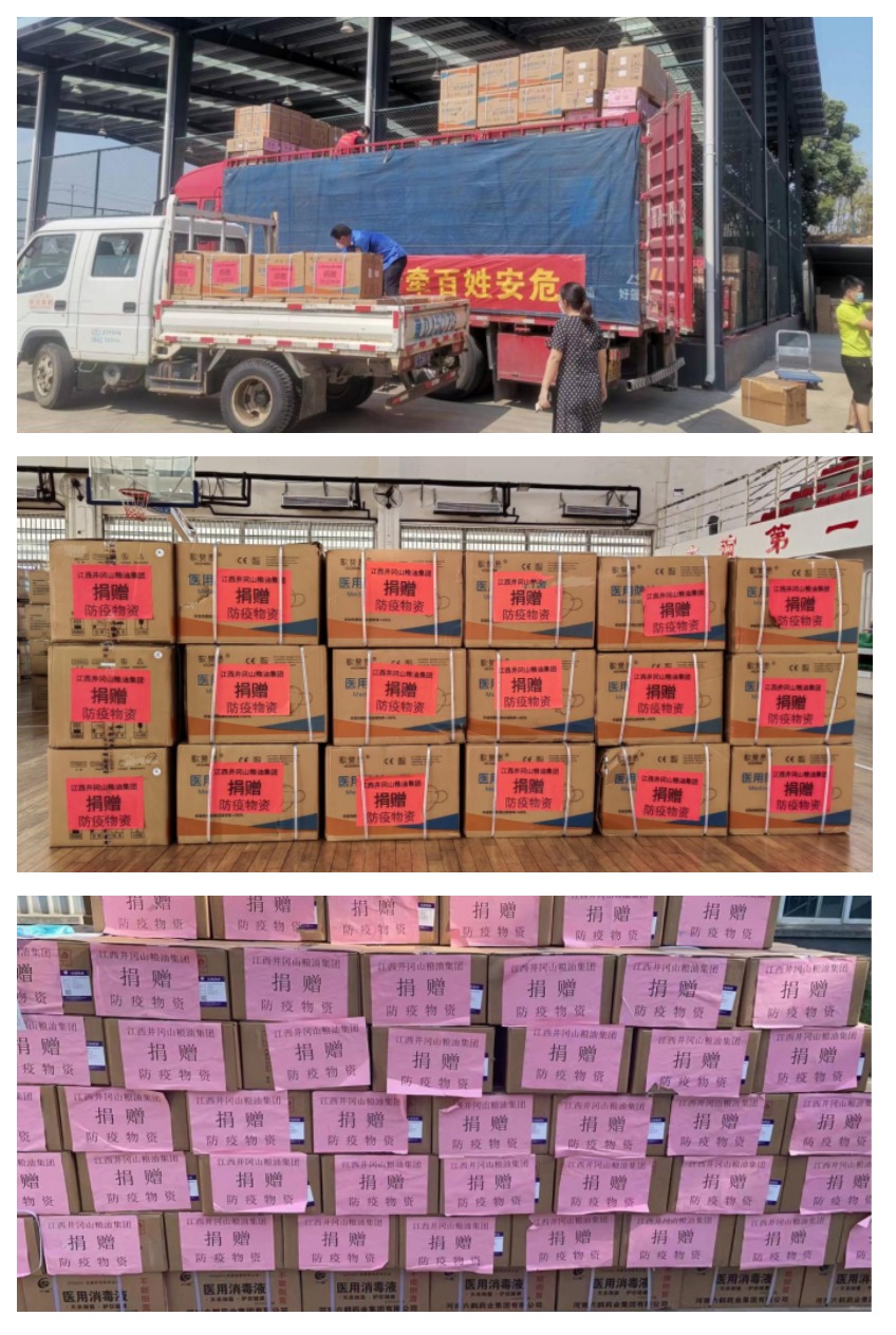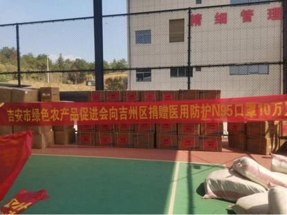 值得一提的是,吉安市绿色农产品促进会会长企业:江西井冈山粮油集团有限公司先后单独向永丰县政府捐赠医用防护N95口罩10万只,向吉水县政府捐赠医用防护N95口罩10万只、医用消毒液1万瓶,向青原区政府捐赠医用防护N95口罩5万只,爱心捐赠,情暖“疫”线,助力打赢疫情防控阻击战、歼灭战。